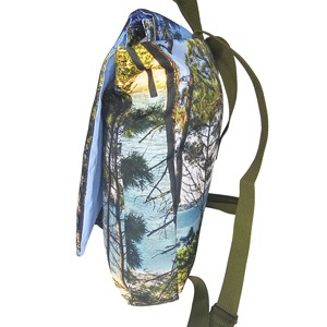 - Dimensions : Largueur 28 cm / Hauteur 35 cm / Profondeur 4 cm 1 poche intérieure 2 compartiments, sangles ajustables. Extérieur : Toile polyester imperméable Intérieur : Tissu coton Lavable à 30°c Impression photographique originale et exclusive ByZab CRÉATION UNIQUE ARTISANALE* * S’agissant d’une création artisanale, le produit reçu peut légèrement différer des photos proposées ici. Retour ou échange possible…